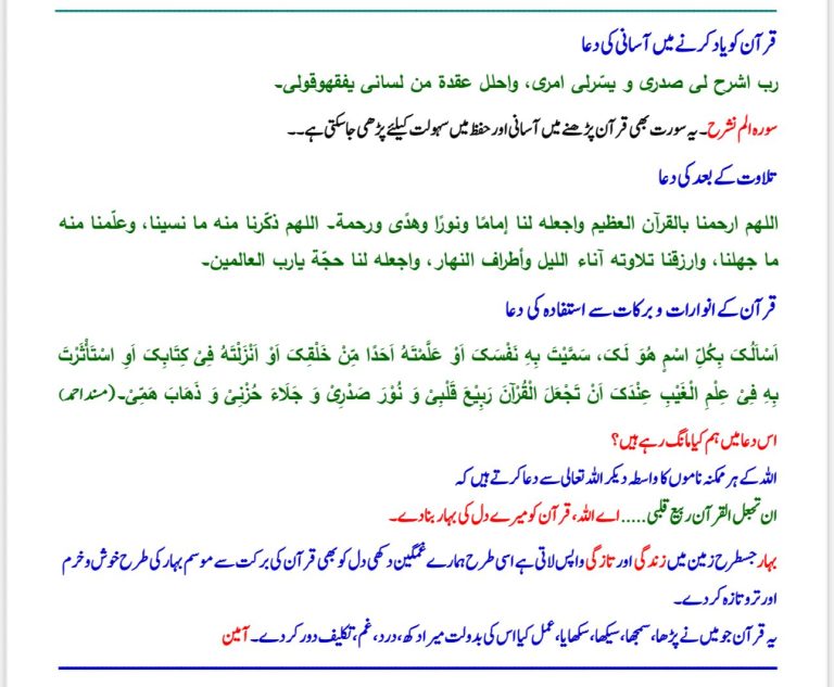 Acting upon the Qur’an – To live by its teachings, follow its prohibitions, and implement its principles in daily life.